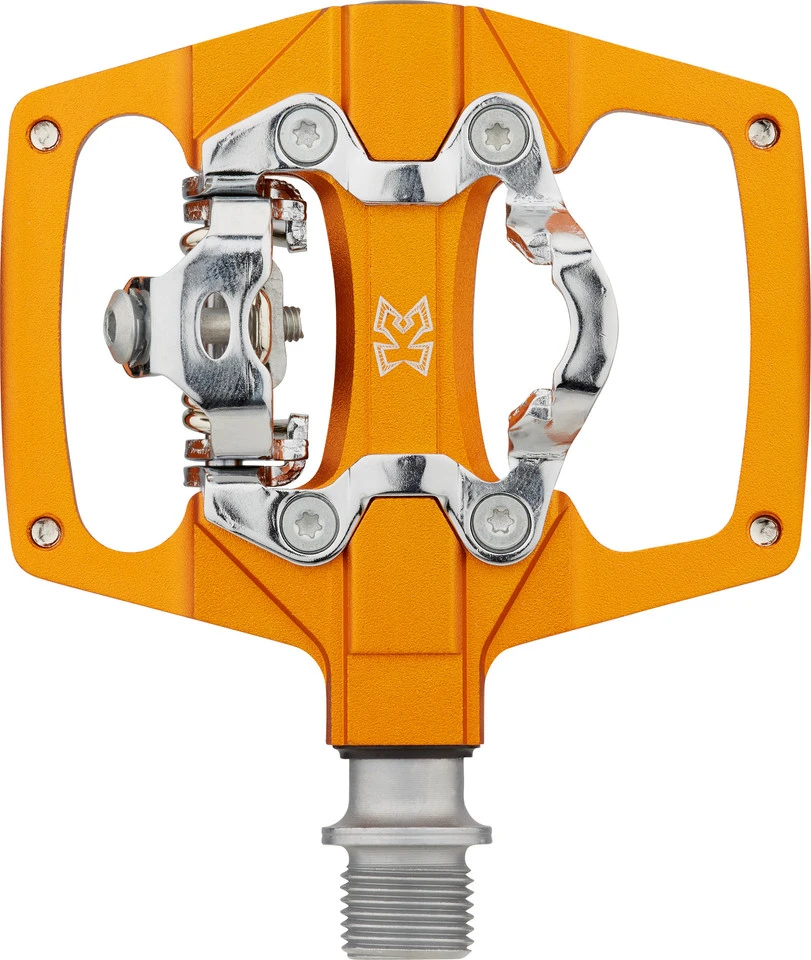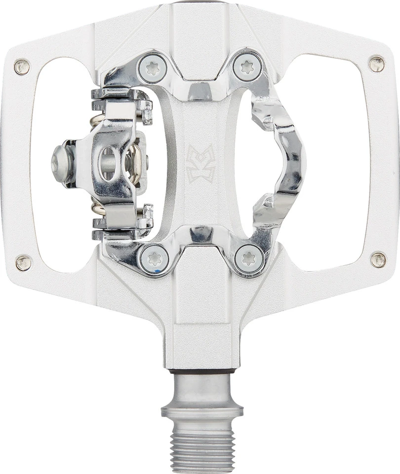 Das AM Trap ist ein leichtes, edles und robustes Pedal kompatibel mit Shimano SPD. Der Pedalkörper ist aus CNC 6061 Aluminium gefertigt, Stahlachse und Bindungen sind aus CroMo. Eine Seite SPD-System und eine Seite Plattform mit 8 Pins. Die austauschbaren Pins auf der Plattformseite geben selbst auf der wildesten Strecke beste Standsicherheit.