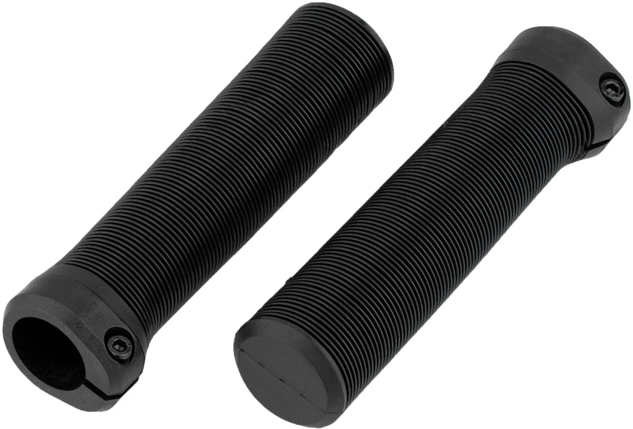 Die 3min19sec Lenkergriffe Lamellen Lock-On kombinieren ein klassisches Rillendesign mit einer modernen Schraubklemmung auf der Innenseite. Das Lamellenmuster gewährleistet optimalen Grip, zugleich wirkt es aber auch dämpfend und reduziert Vibrationen. Die Griffe sind 135 mm lang und weisen ein geschlossenes Ende auf. Gefertigt aus robustem Kunststoff und in schlichtem Schwarz gehalten, werden sie an Deinem Lenker lange eine gute Figur machen.