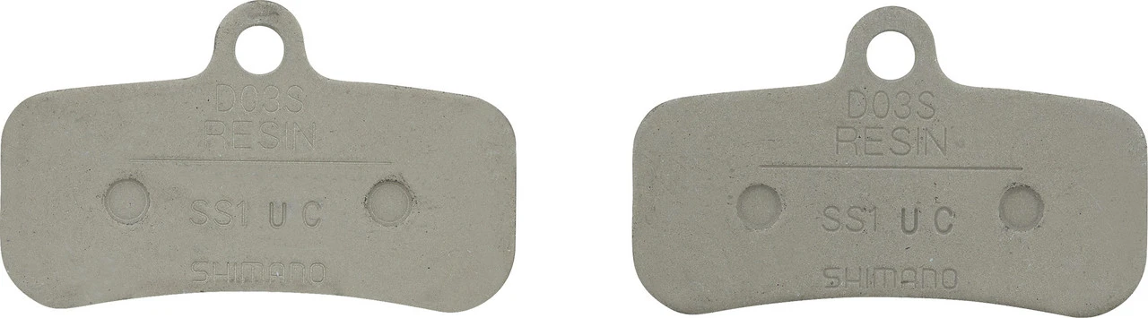 Die Shimano D03S-RX sind Resin-Bremsbeläge auf einer Stahl-Trägerplatte ohne Kühlrippen. Sie wurden für 4-Kolben-Scheibenbremsen wie z. B. Saint BR-M820, XT BR-M8120 oder SLX BR-M7120 konzipiert. Die Beläge sind 40 % verschleißfester als das Vorgängermodell D01S, überzeugen aber weiterhin, wie für organische Pads üblich, mit geringer Geräuschentwicklung. In Sachen Bremskraft und Dosierbarkeit liegen sie im oberen Bereich. Sowohl bei Trockenheit wie bei Nässe leisten die D03S-RX Bremsbeläge hervorragende Dienste.